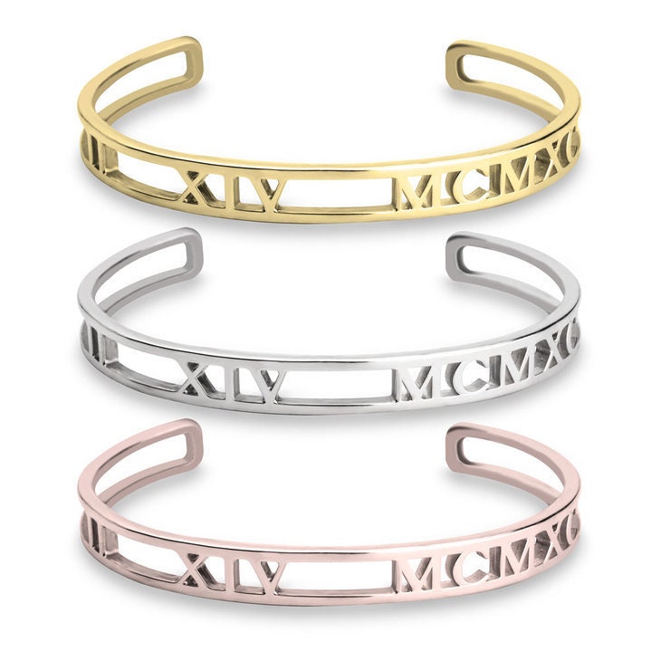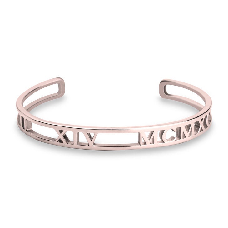Roman Numerals Cuff Bracelet, Solid,Cutout, Sterling Silver/24K Gold/Rose Gold Plating, Christmas/Thanksgiving/Anniversary/Birthday Gifts
