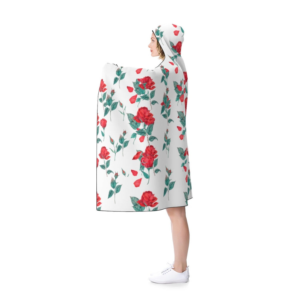 Roses printed on Super soft, cuddly and amazing hooded blanket. This hooded blanket is the Perfect gift for any occasion because it can be used for so many things! Use it for watching movies, as a cape, sleeping and snuggling with, a bathrobe, camping. It's super soft and warm :)
