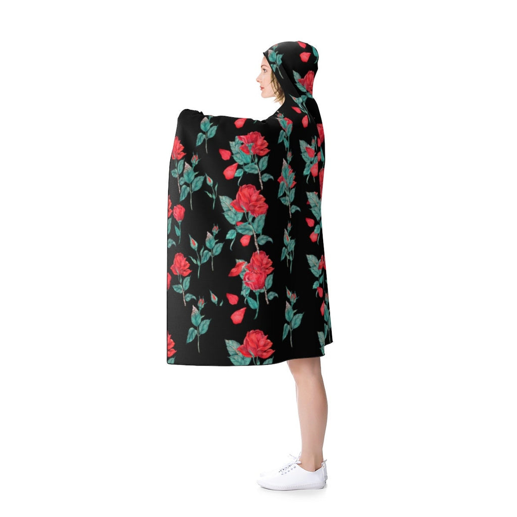 Roses on black Hooded Blanket,Gift for Christmas,Thanksgiving,Birthday,Valentine Gifts for Her,Camping,TV-time/Fireplace Snuggler Blanket
