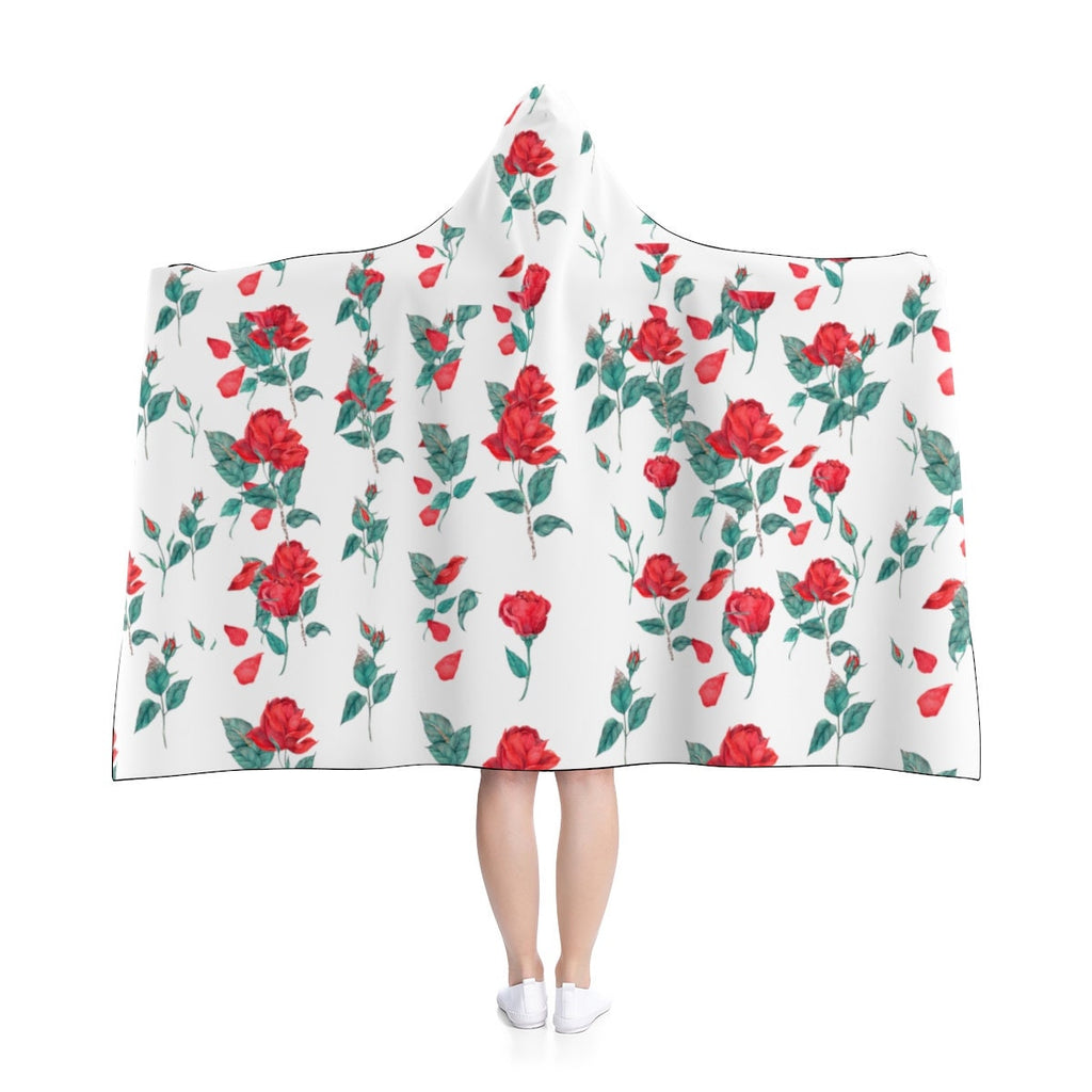 Roses on white Hooded Blanket,Gift for Christmas,Thanksgiving,Birthday,Valentine Gifts for Her,Camping,TV-time/Fireplace Snuggler Blanket