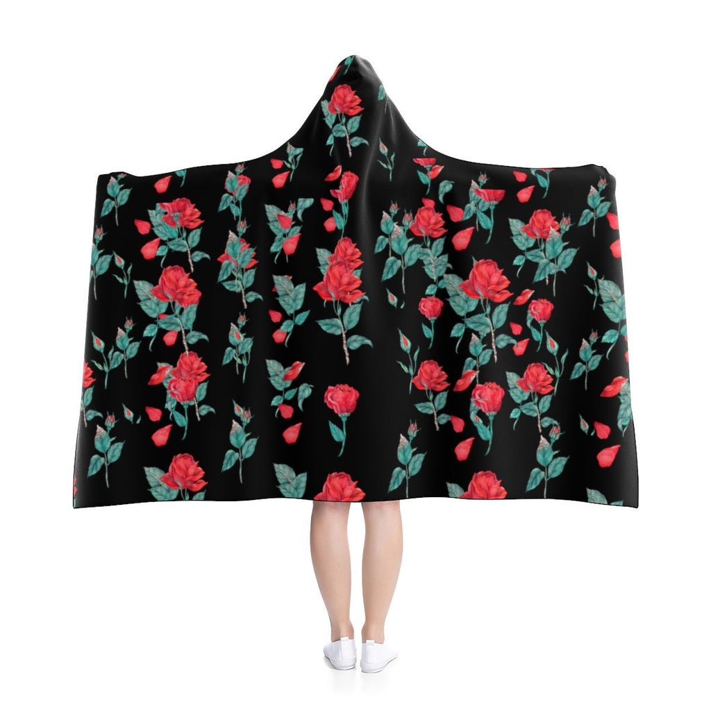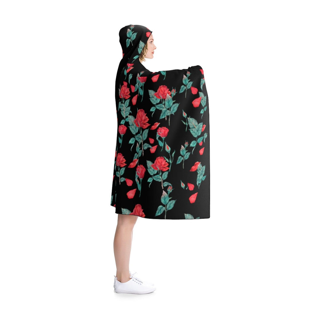 Roses Splash printed, Super soft, cuddly and amazing hooded blanket. This hooded blanket is the Perfect gift for any occasion because it can be used for so many things! Use it for watching movies, as a cape, sleeping and snuggling with, a bathrobe, camping. It's super soft and warm :)