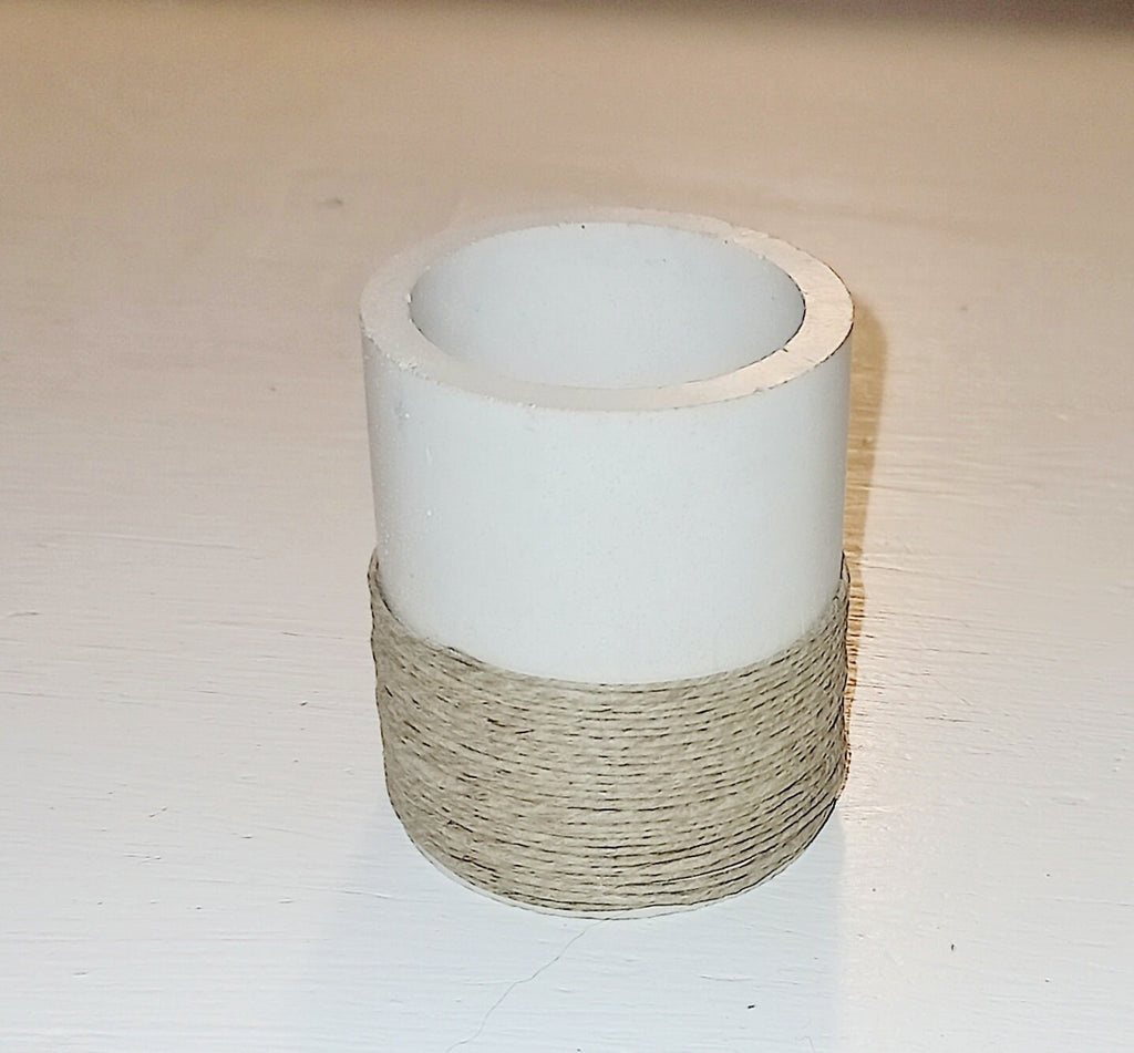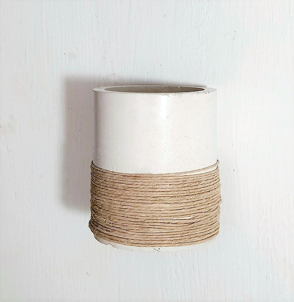 This succulent/cacti plant holder is the perfect little addition to your home zen decor. The twine wrapped around the pot gives it a rustic yet contemporary style. This concrete planter can be indoors or outdoors on your patio/deck table.