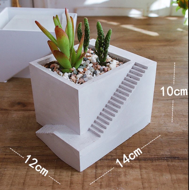 This square shaped succulent/cacti plant holder with a zen-style architectural stairway steps is the perfect little addition to your home zen decor or as a gift. This container/pot/planter makes the perfect gift, party favors, or hostess give away, can be used indoors or outdoors on your patio/deck table. A rustic yet contemporary style and finish.