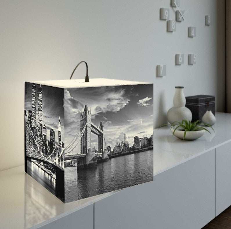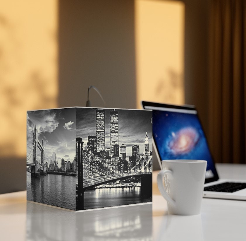 Skylines of NYC & London, New York City, 3D Printed Square Cube Lamp,Contemporary/Modern/Trendy Light/Home Decor Gifts, Stackable Lights