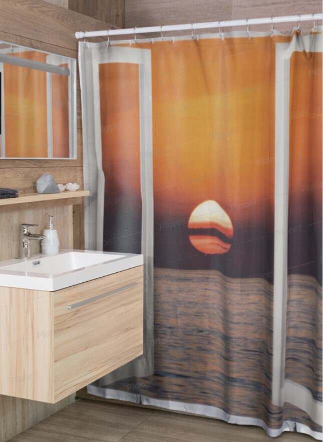 Wake up to the sunrise or wind down your evening with the sunset in your most private space with this open faux window view of the sun printed shower curtain. Impress your guests with this shower curtain with the realistic fake open window view of the sun rise or sunset. Suits any bathroom decor for a minimalist decor. Hide the clutter around your bathtub for a clean look.Makes a perfect gift for friends or loved ones who are fans of the sunset or sunrise.