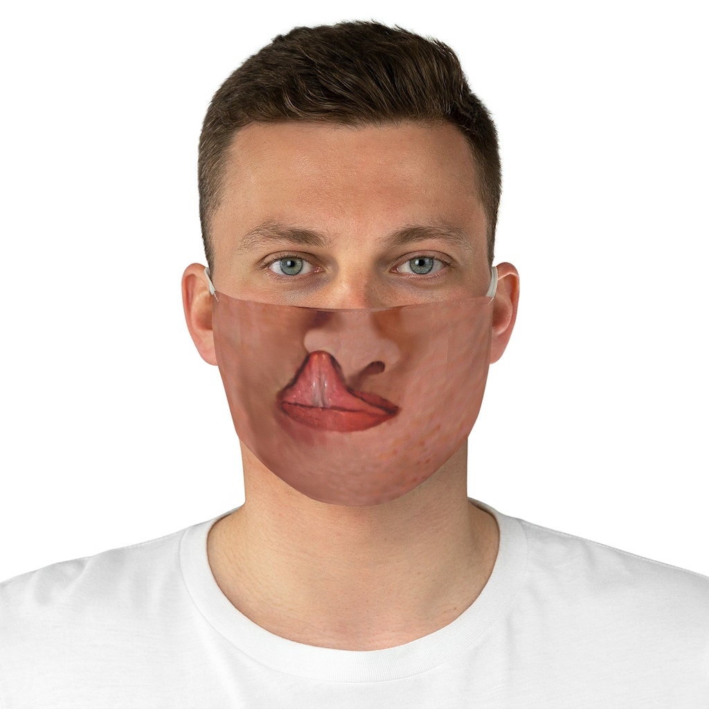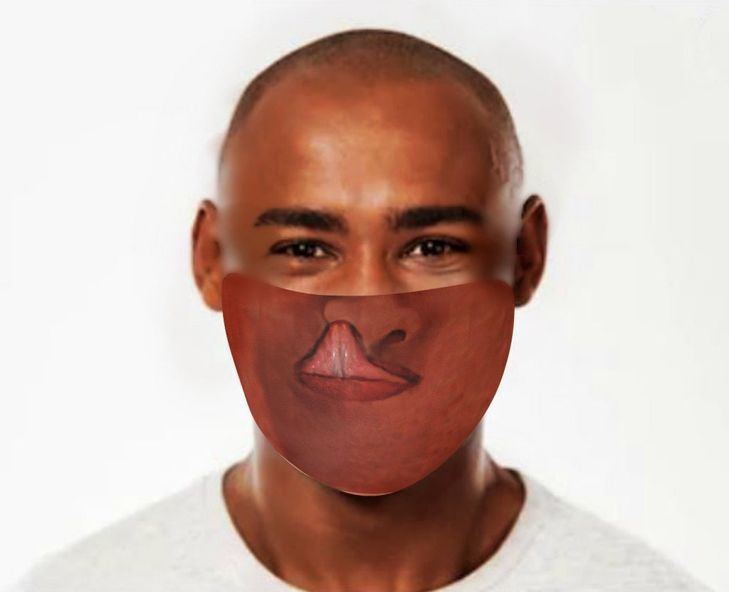 Make everyone smile with this unique Tongue in Nose Face 3D Printed Realistic Expression Unisex Fabric Mask for Light, Medium & Dark skin, Reusable Washable 2 layer Polyester Cloth