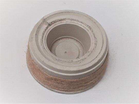 This succulent/cacti plant holder is the perfect little addition to your home zen decor. The twine wrapped around the pot gives it a rustic yet contemporary style. This concrete planter can be indoors or outdoors on your patio/deck table.