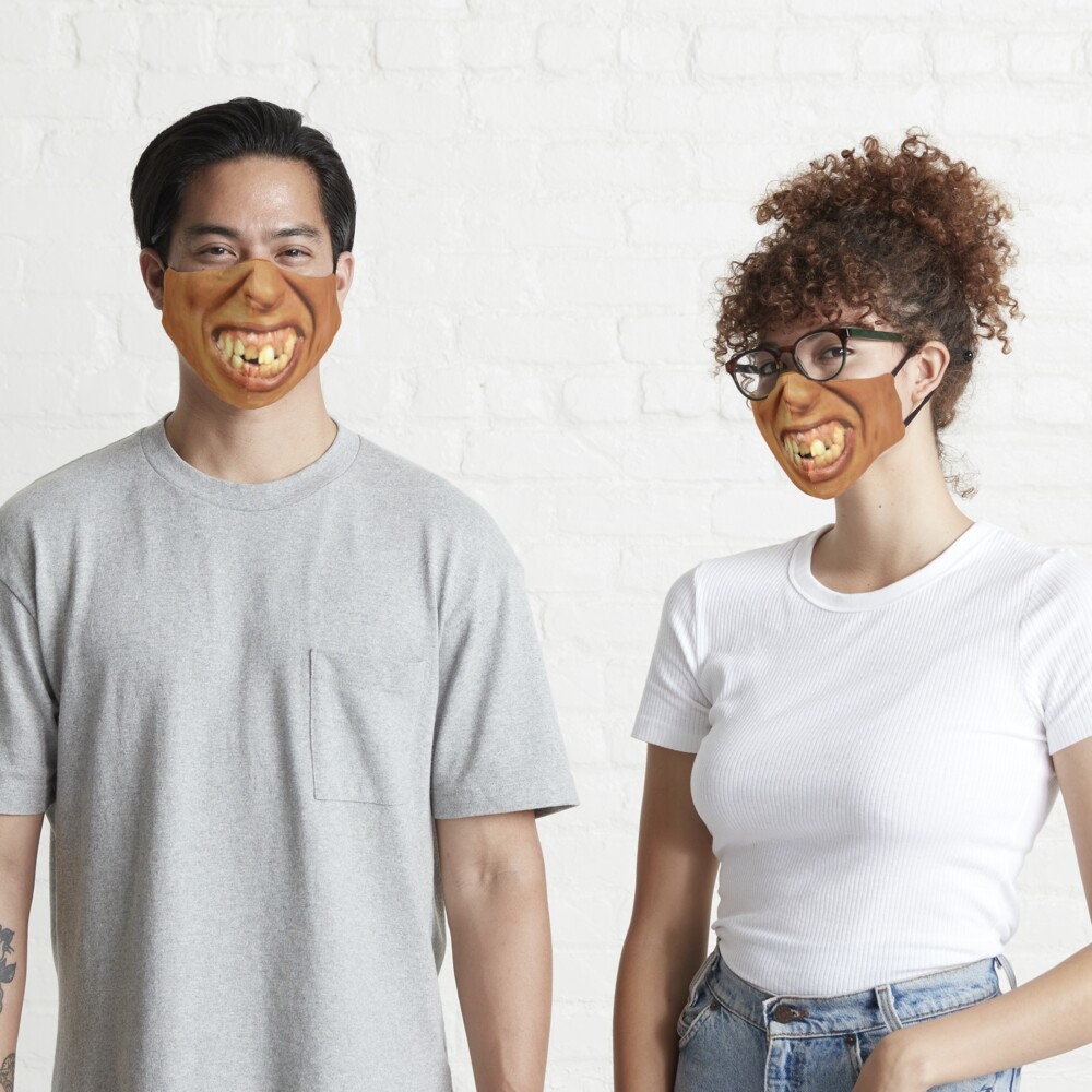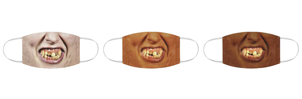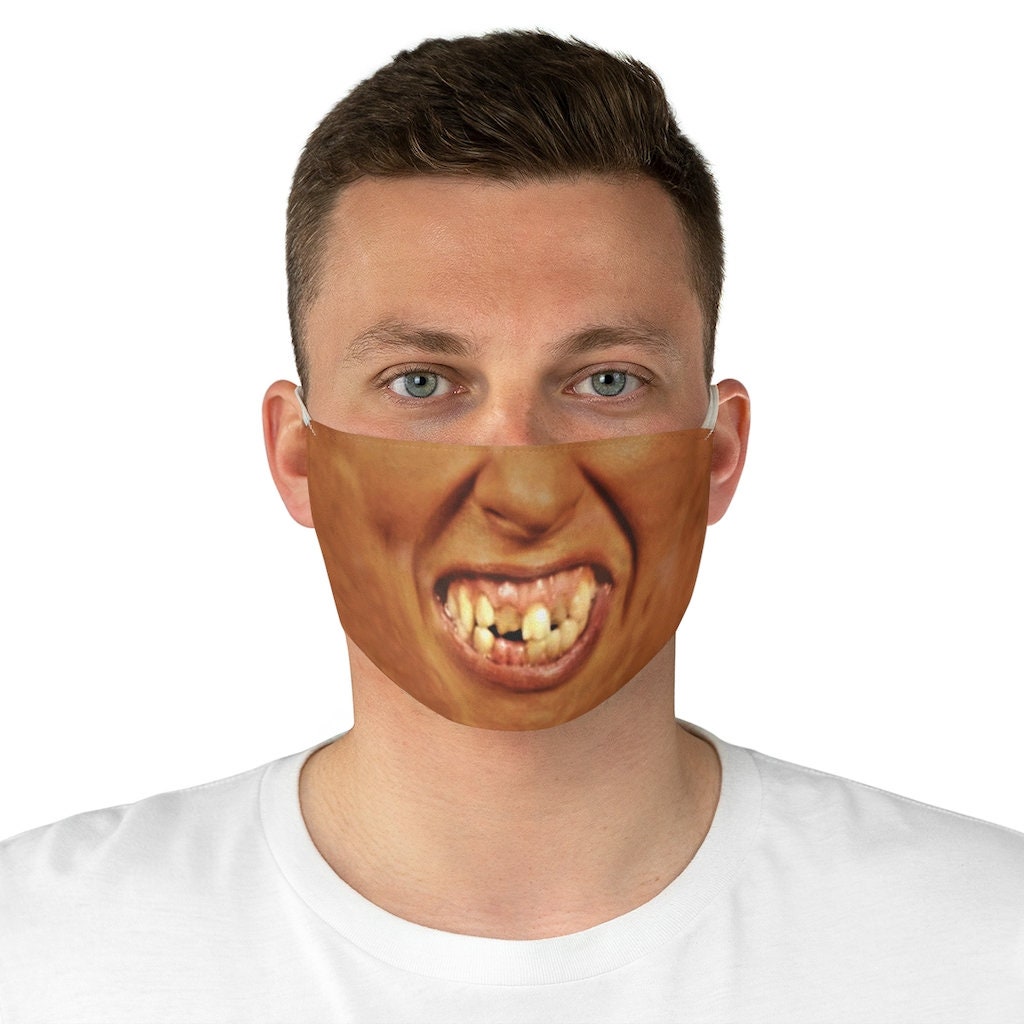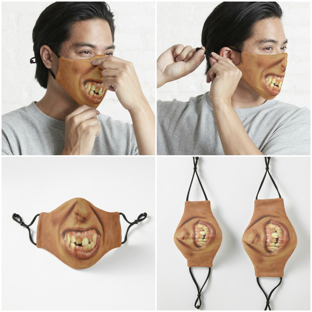 Make everyone smile with this unique Ugly Teeth Witchy Grin 3D Printed Realistic Expression Unisex Fabric Mask for Light, Medium and Dark skin,Washable Reusable 2 layer or 3 layer Polyester Cloth