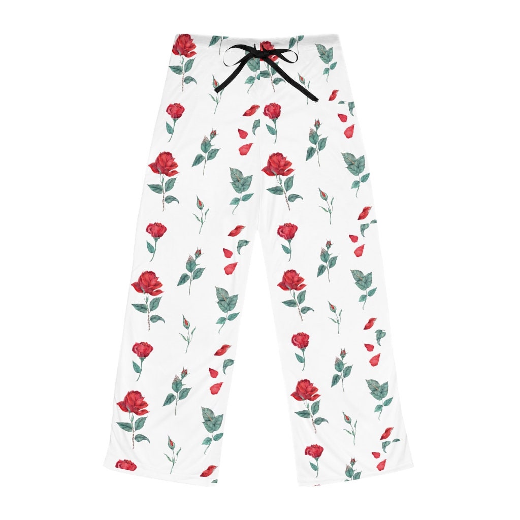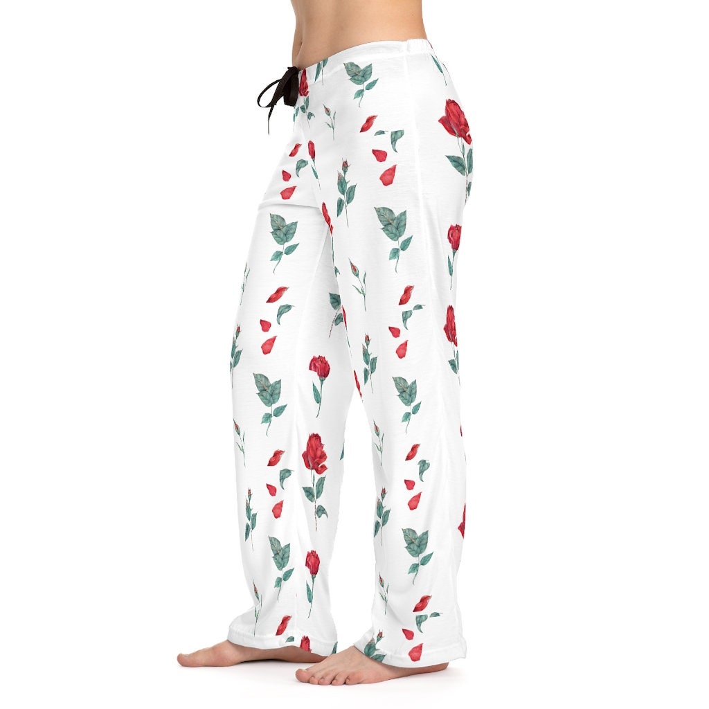 White-Red Roses Unisex Pajama Lounge Yoga Sleep Pants,Gift for Valentines/Anniversary/Christmas/Birthday/Graduation/Housewarming/Wedding/