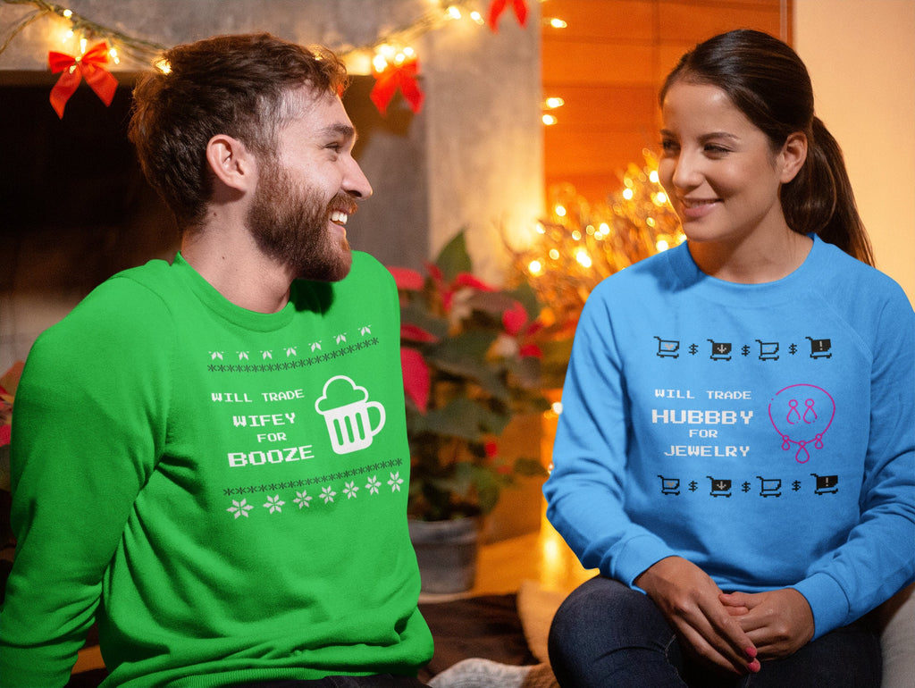Wife jokes Ugly Sweater Unisex Crewneck Sweatshirt, Gift for Mom/Christmas/Thanksgiving/Birthday/Anniversary/Housewarming/Halloween/Grads