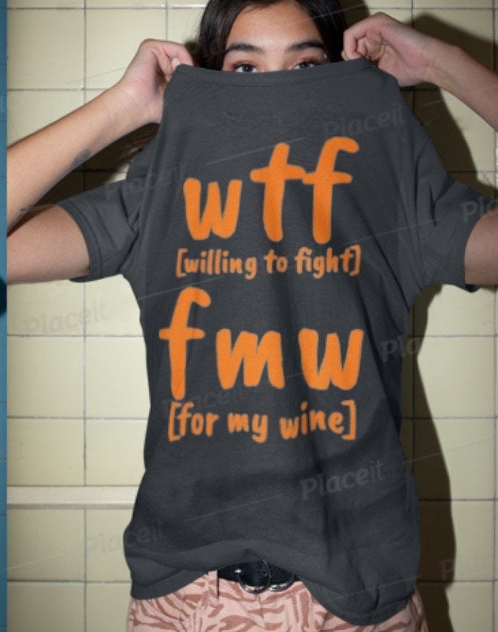 Need a unique gift idea? WTF FMW Willing to fight For my wine, Unisex funny t-shirts for MEN and Women make great gifts for any occasion.
