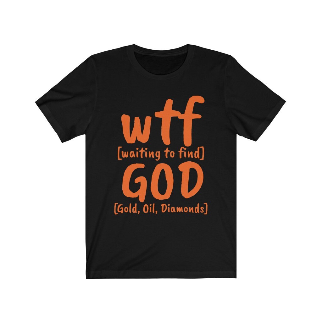 WTF God Waiting to find Gold Oil Diamonds,Unisex T-shirts,wtf funny t-shirt for MEN, funny t-shirts for Women,wtf God funny t-shirts