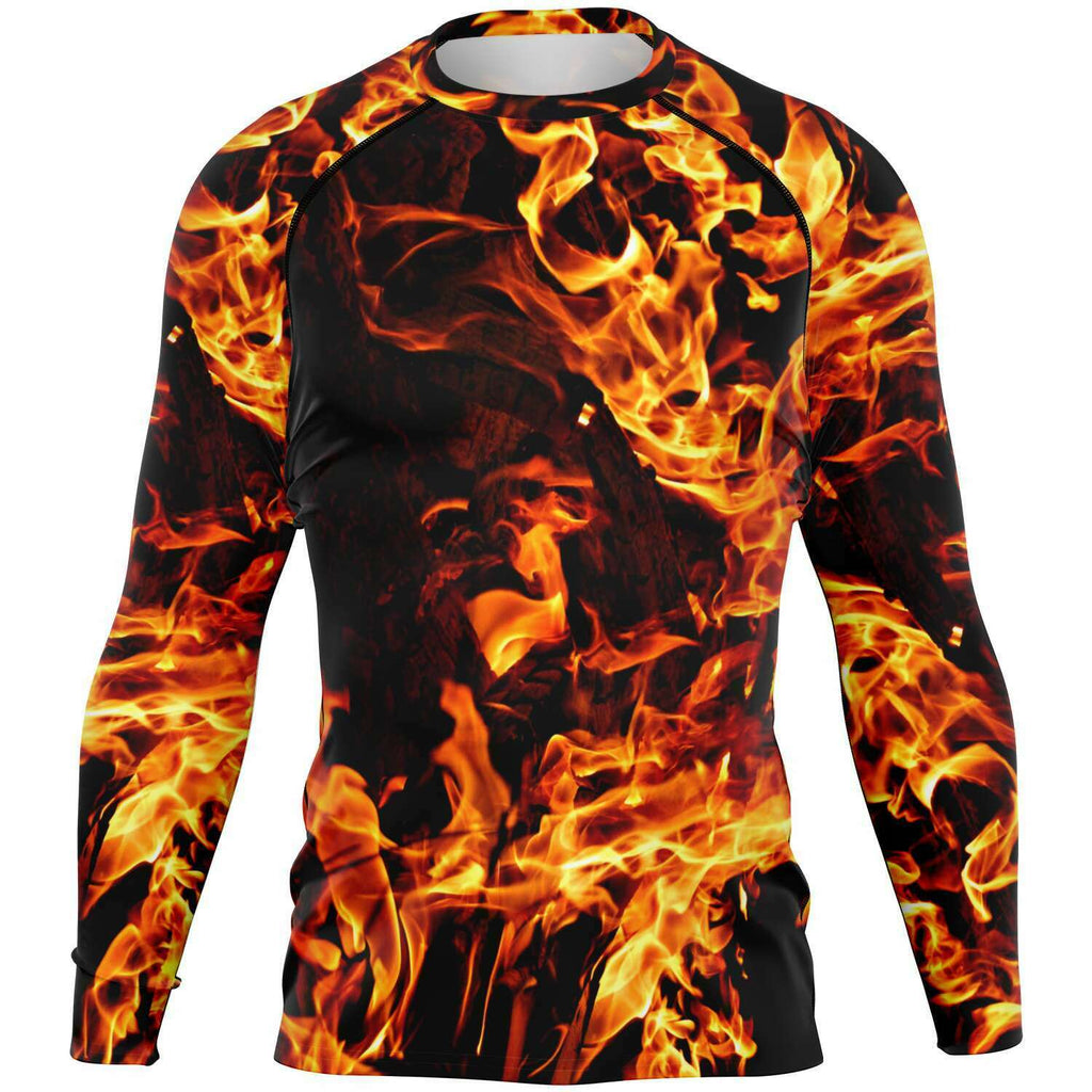 XS-4XL Mens Rashguard Long Sleeve SlimFit, UPF 50+,Printed & Handsewn
